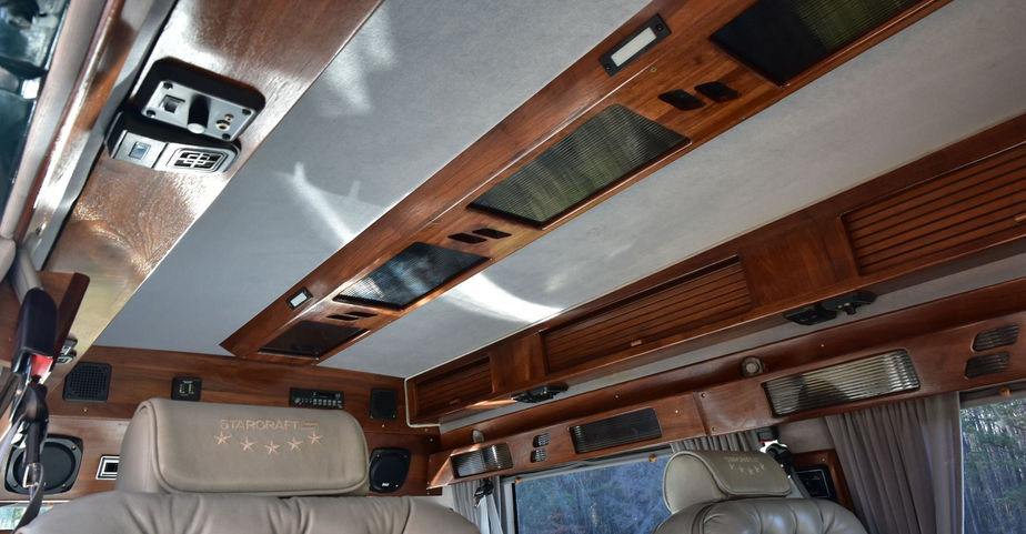 Cette fourgonnette de conversion Chevrolet G20 Starcraft ST 1991 a été achetée de Tom Gill INC. À Columbus, OH. Cet exemple sans rouille conserve sa peinture poly vert moyen d'origine et son intérieur en cuir gris. L'ensemble de conversion Starcraft comprend des effets de sol, des bandes graphiques personnalisées, des fauteuils capitaine avant et arrière en cuir avec siège arrière inclinable, un téléviseur, un magnétoscope, un système audio arrière, une climatisation arrière, des accents de bois partout et bien plus encore. Ce van à un seul propriétaire qui n’a fait que 50 508 miles et est propulsée par un moteur V8 de 5,7 litres, une transmission automatique avec overdrive et des pneus Michelin à paroi blanche d'un demi-pouce. Ayant juste été révisé, y compris un service AC, ce bien entretenu par exemple est prêt à être apprécié par son nouveau propriétaire.